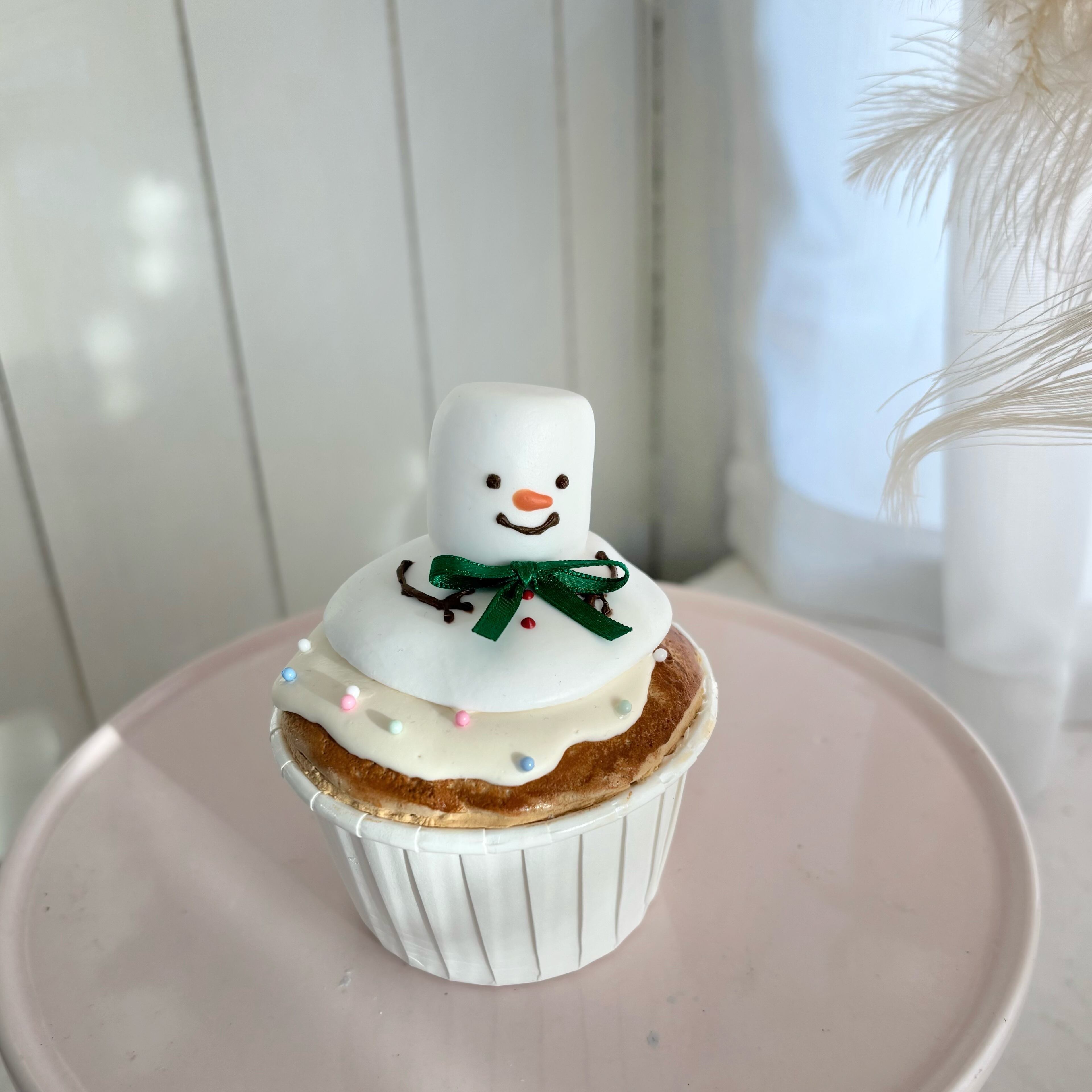 複数飾っても可愛いスノーマンのカップケーキ、クリスマスシーズンの必須アイテムです。ぜひお迎えください!