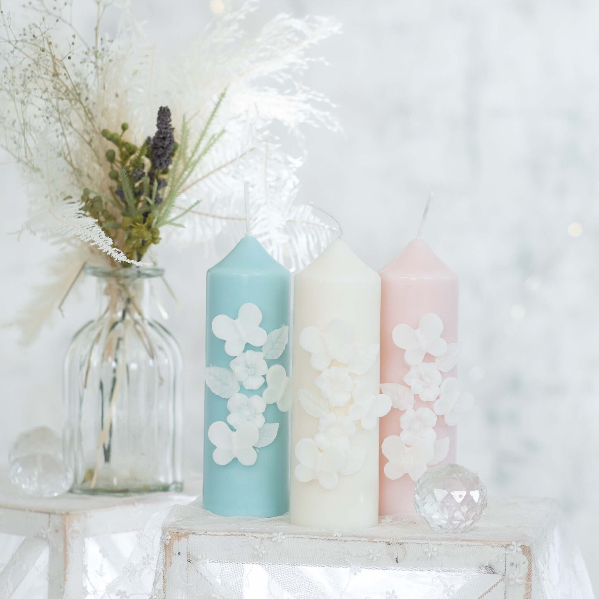 ハトのキャンドルと同じ蝶と花のモチーフを使用しているため