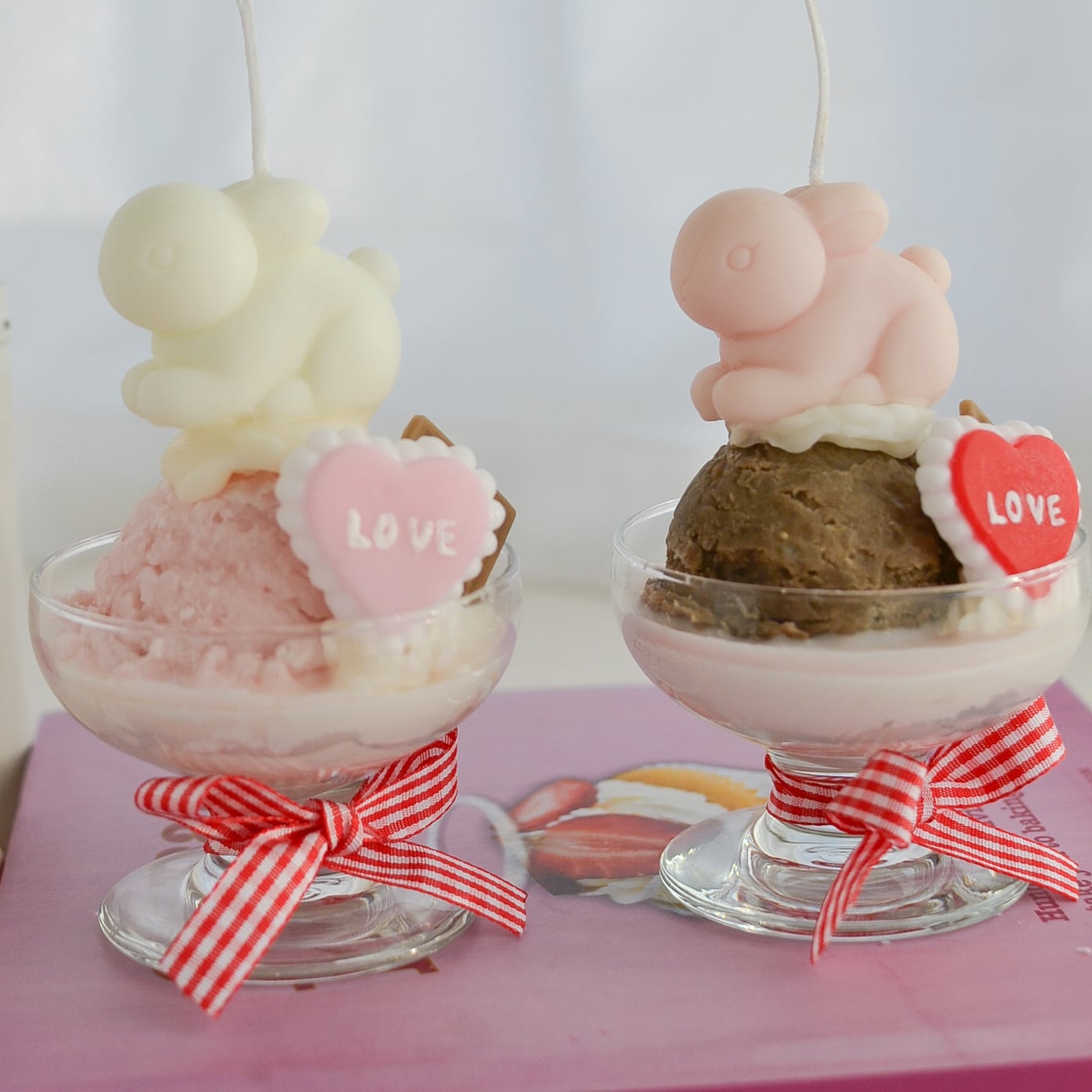 ウサギのマスコットが乗っている姿は、とってもキュート!さらに、アイスの表面もワックスにこだわりリアルな質感に仕上げました。