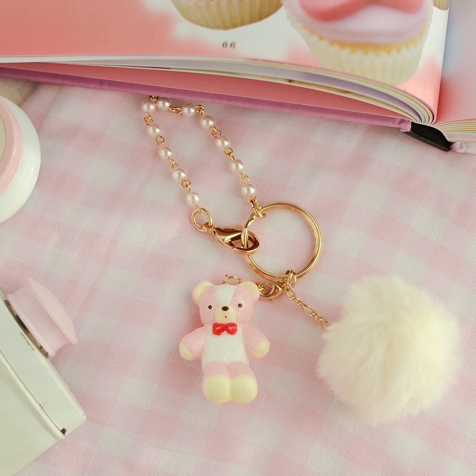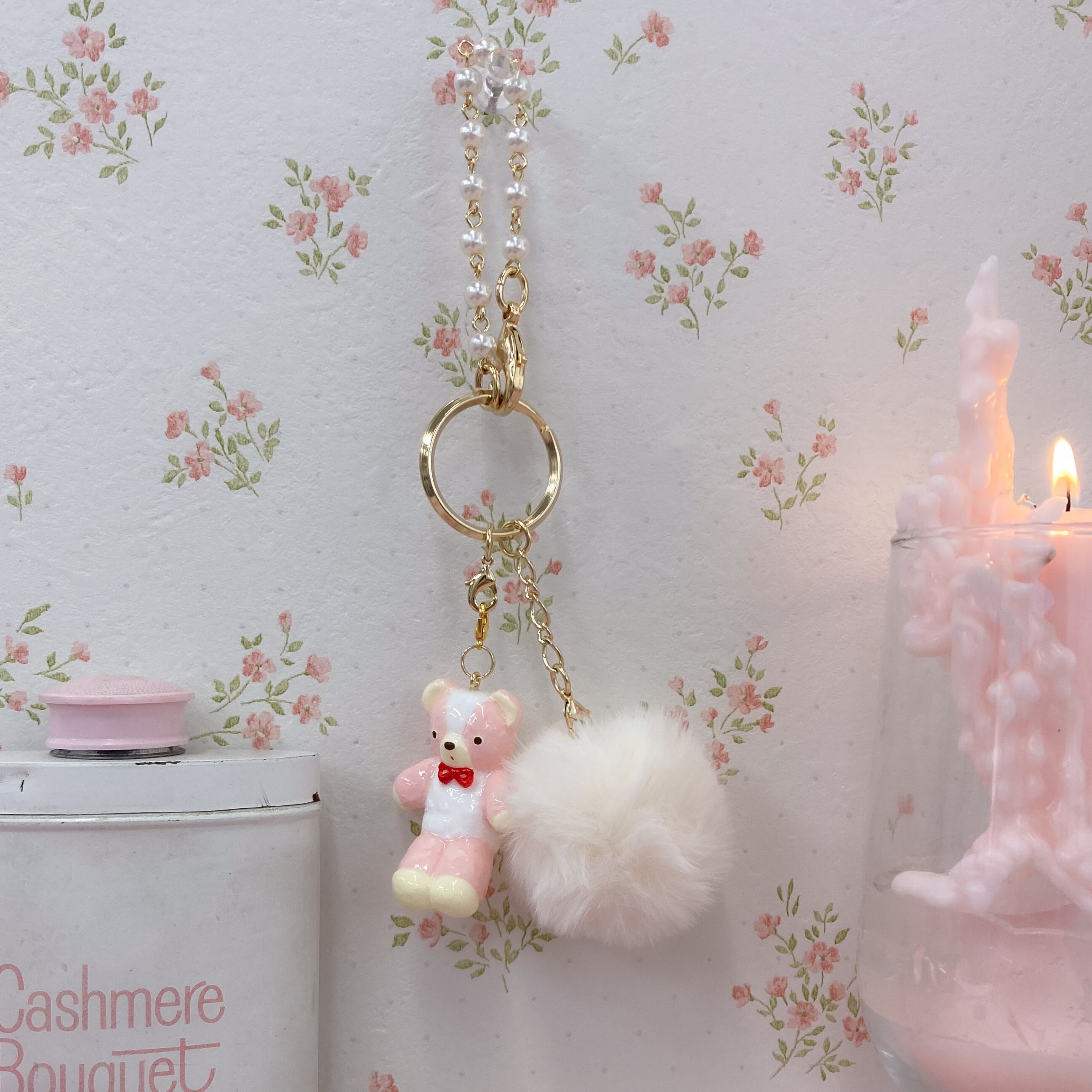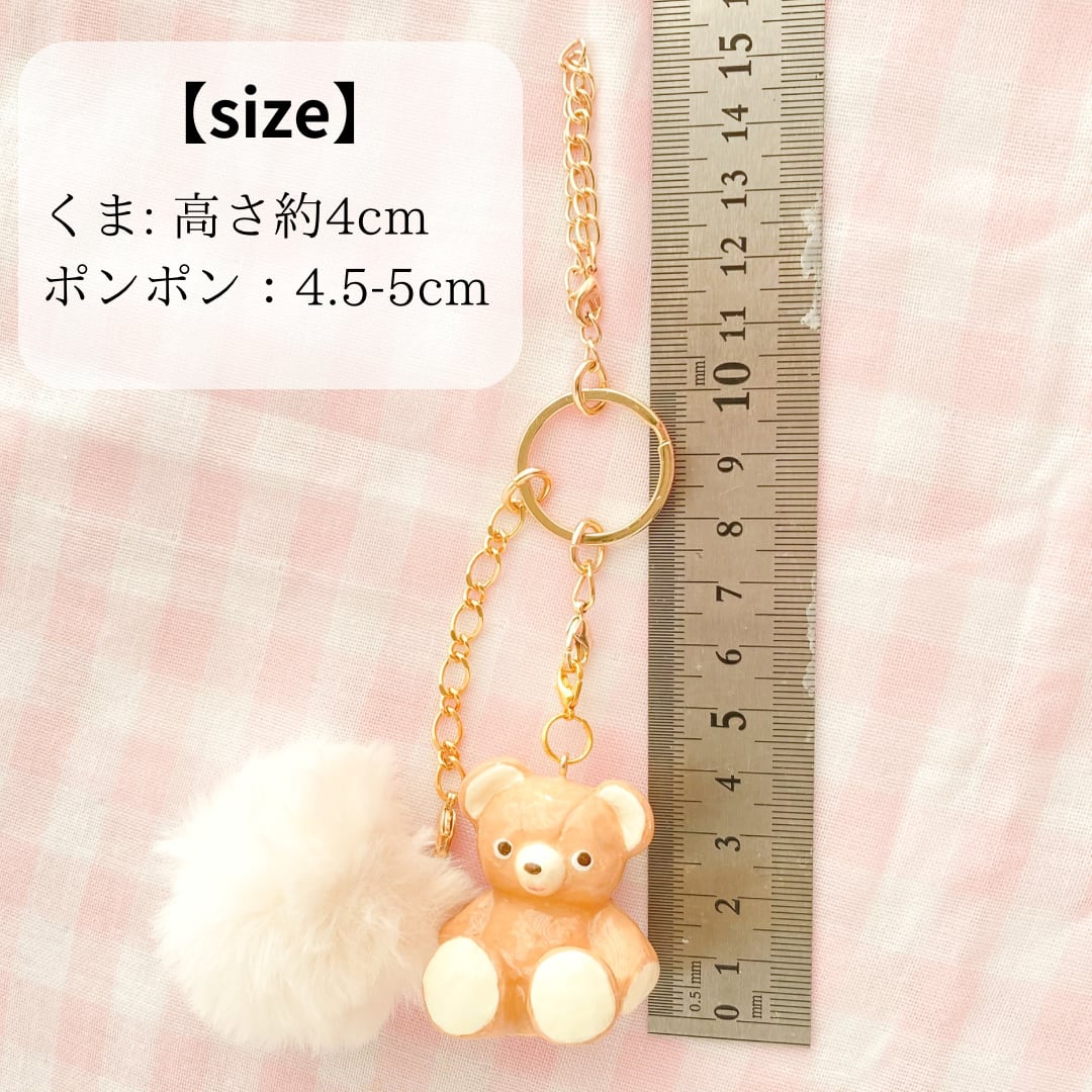 手作りのかわいいレジン製のくまが特徴のバックチャーム。