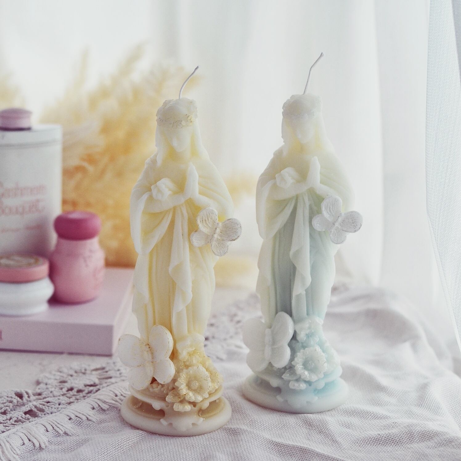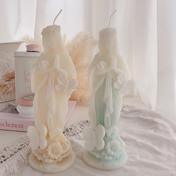 パステルカラーのマリア様キャンドル。